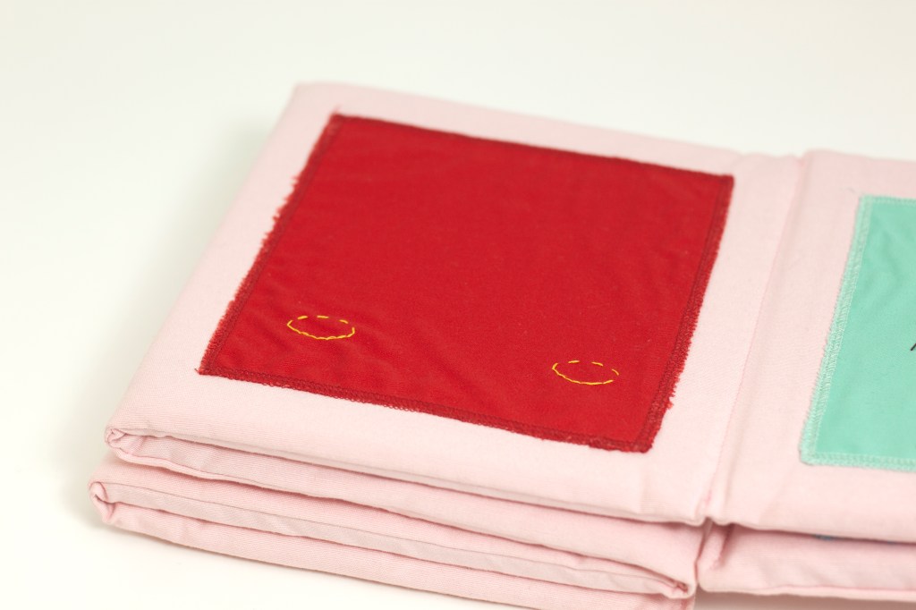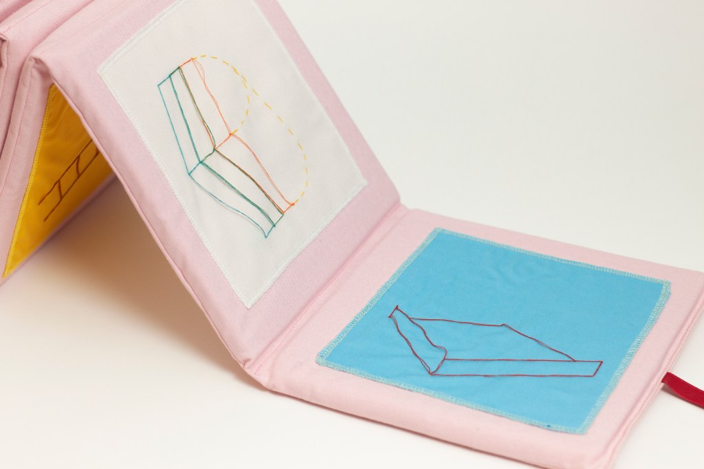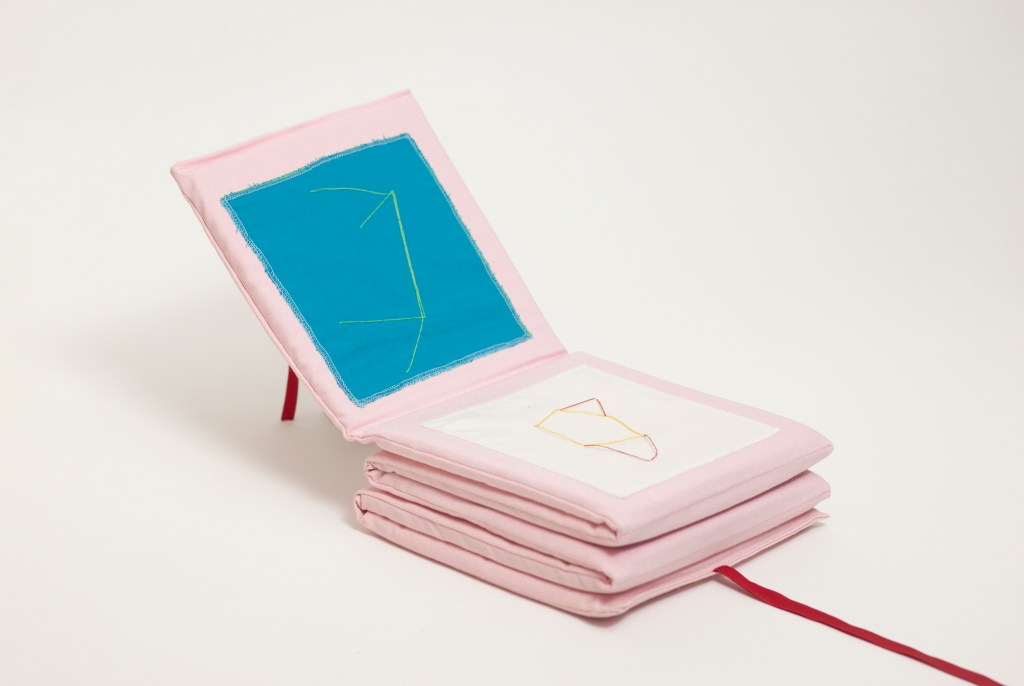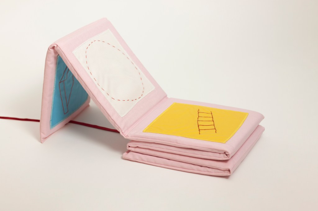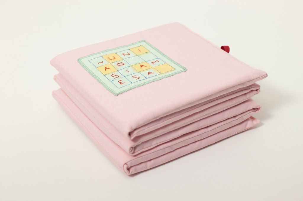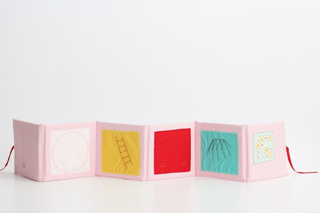 Bath book, sewn cotton fabric, 141x 24x 1 cm.